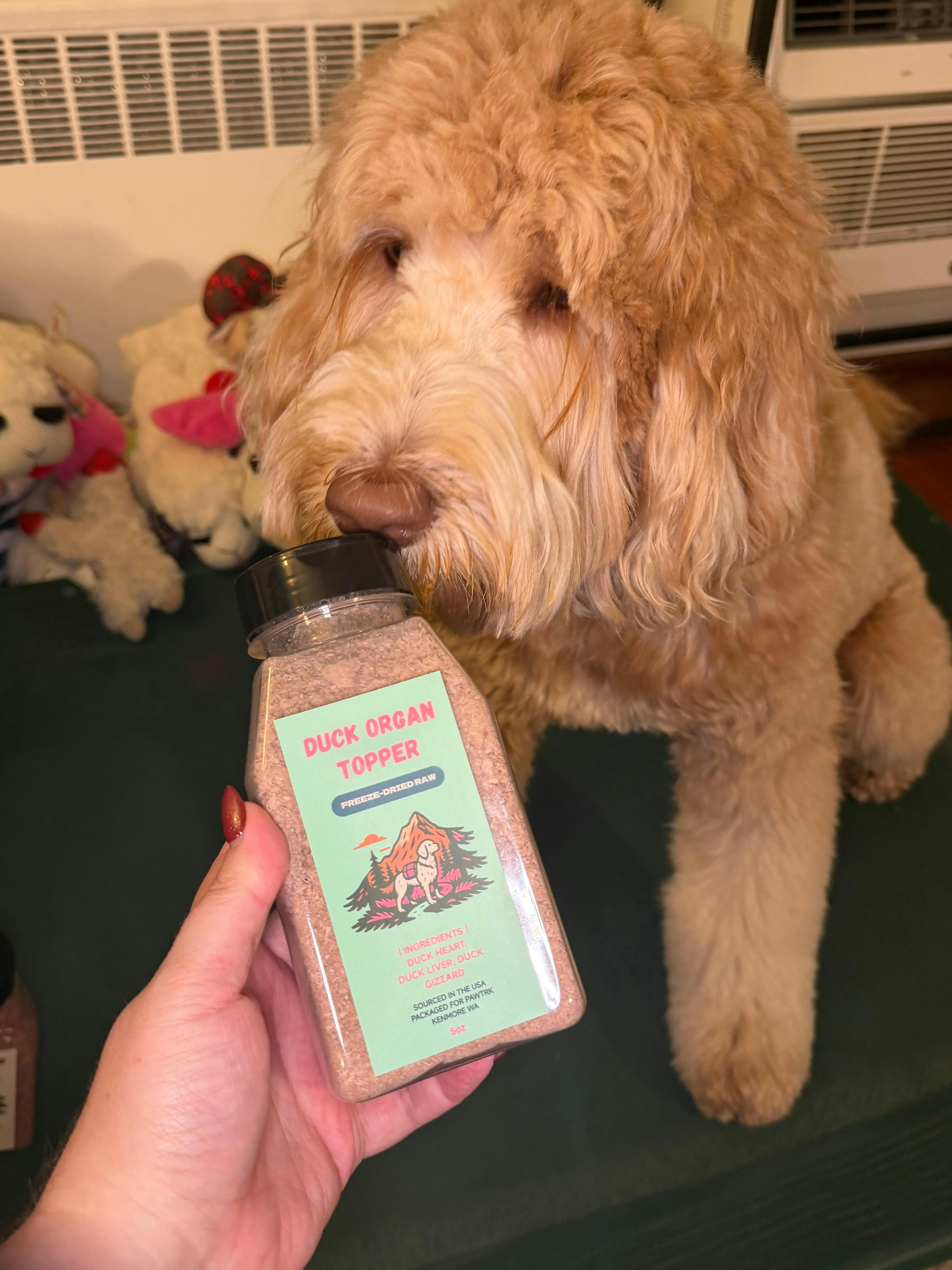 My super picky doodle sometimes ignores her food, so I’m always looking for good high quality toppers to help keep her meals interesting. She LOVES this topper! She eats her full bowl once I add this in. She also kept sniffing for the container and jumping up to the counter looking for it so I had to put it in a cabinet! Very very happy with it