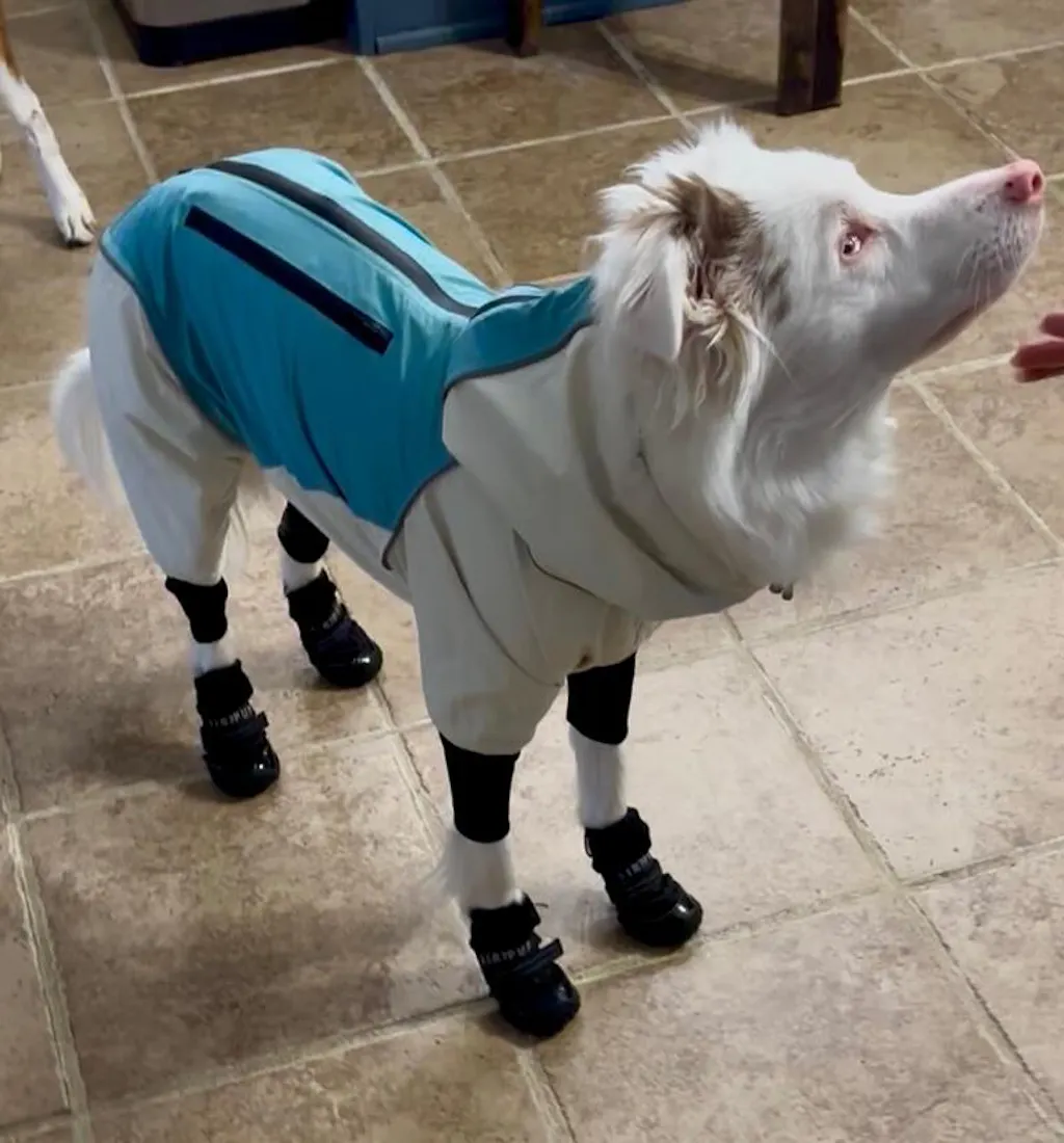A: Don’t worry too much! Most dogs get used to Trail X after 1–3 walks. The pattern is made from 24 individual pieces, and we’re on our 7th iteration, all tested on our in-house model Molly, to make sure dogs can run, jump, and pee comfortably without restriction. Start with a short walk and a few treats, and most dogs quickly forget they’re even wearing it. If your dog still seems uncomfortable, reach out to us anytime with feedback :) We’re happy to help and are always improving the design.
