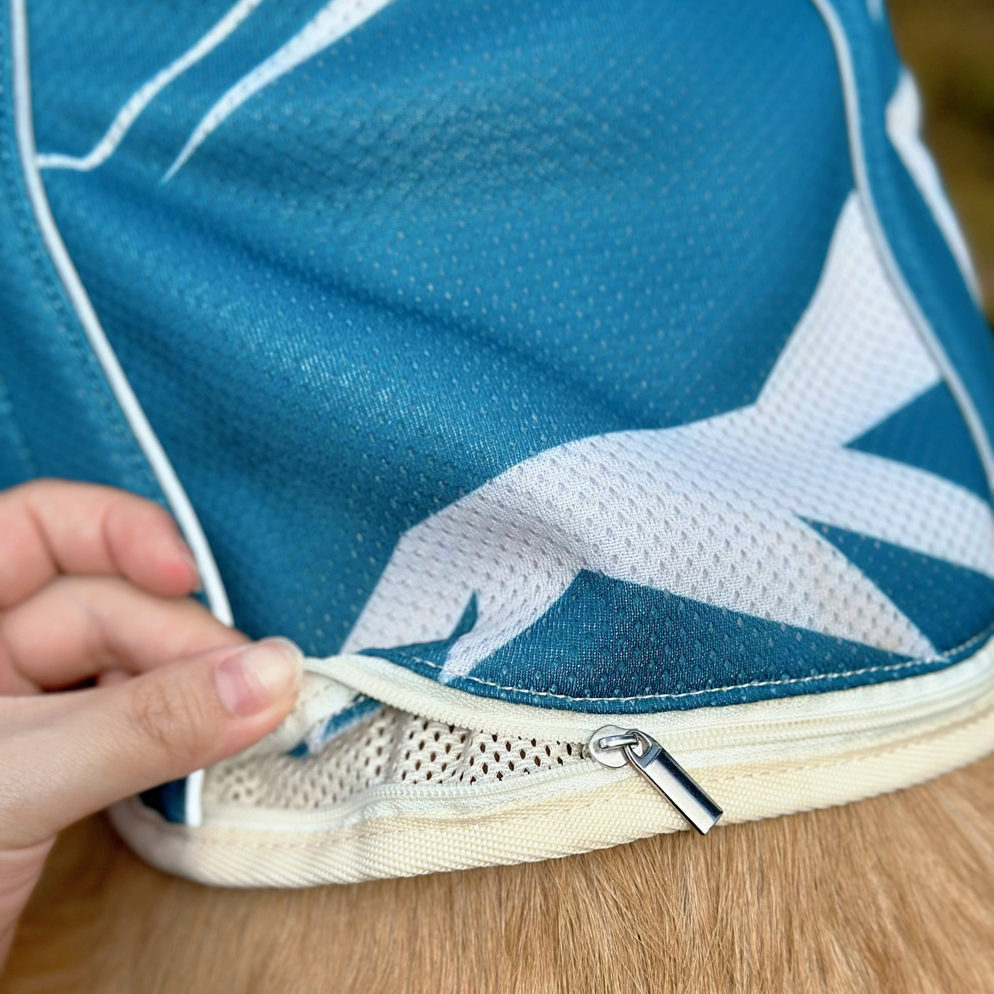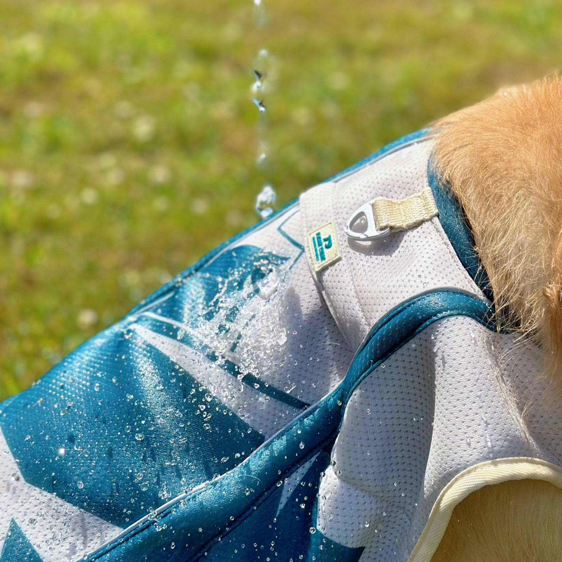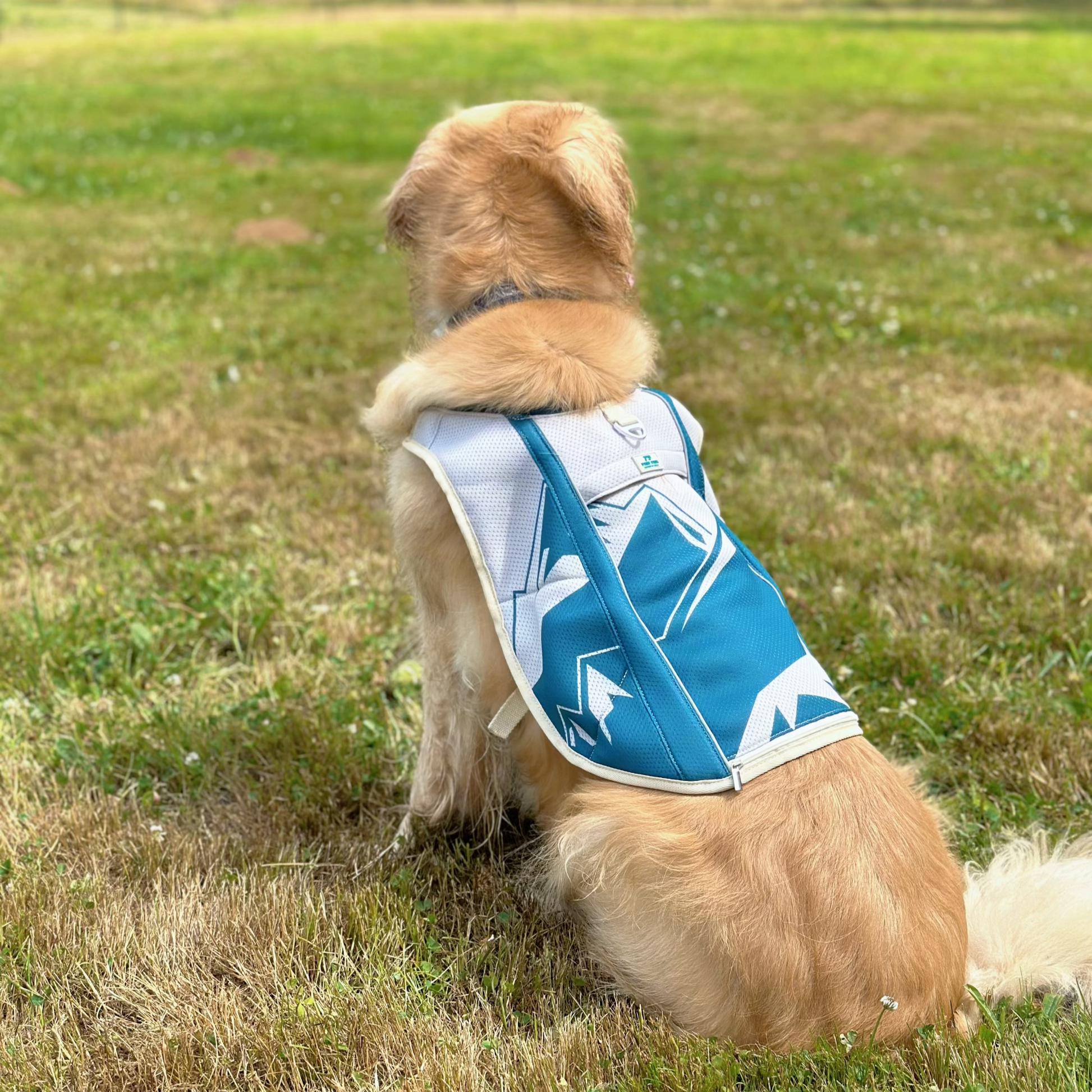 The TrailBreez Cooling Vest keeps your dog cool and comfortable on hot-weather adventures. Just soak, wring, and wear — the triple-layer fabric activates evaporative cooling instantly.