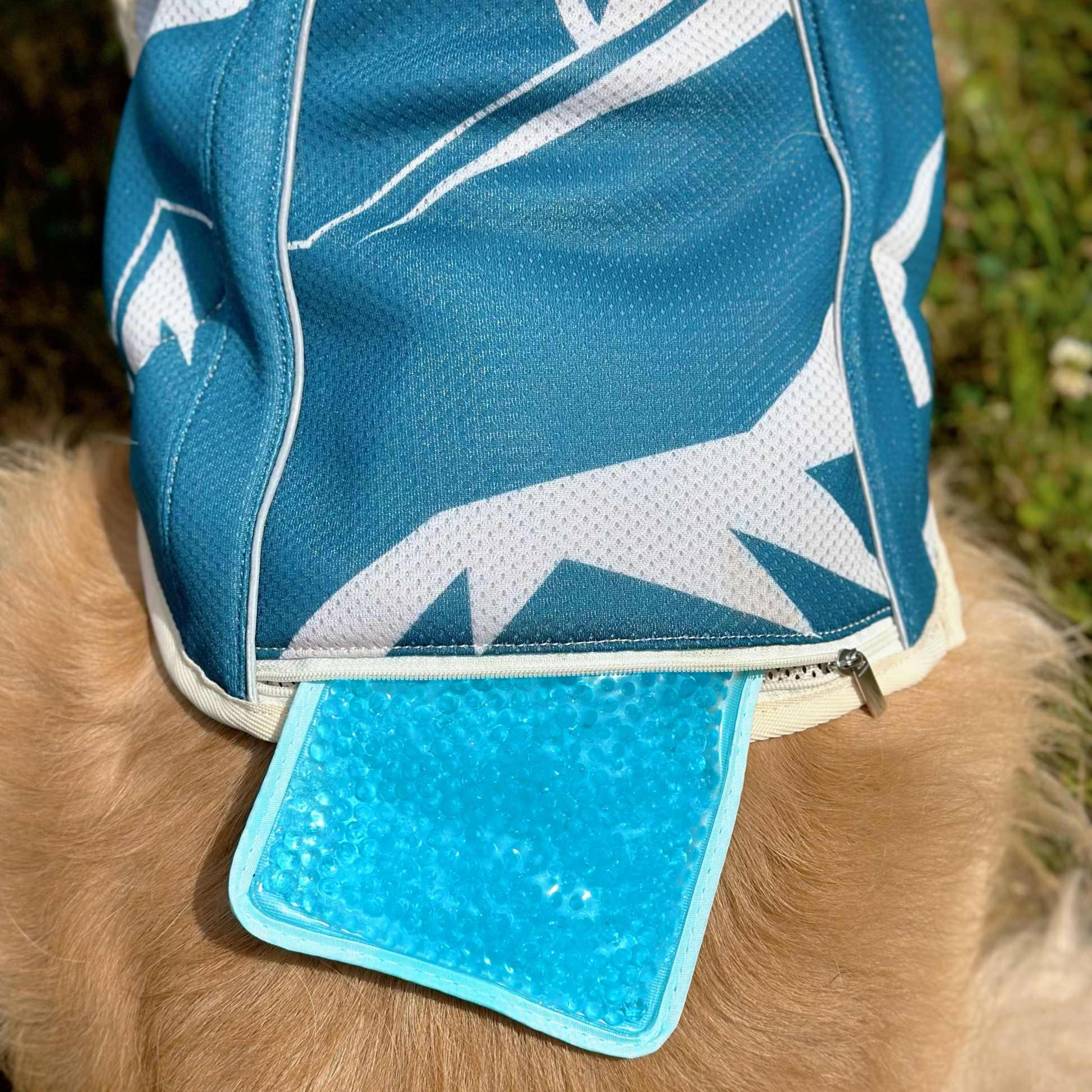 Back pocket fits reusable ice pack (up to 7.76" x 4.93") for added cooling on extra hot days